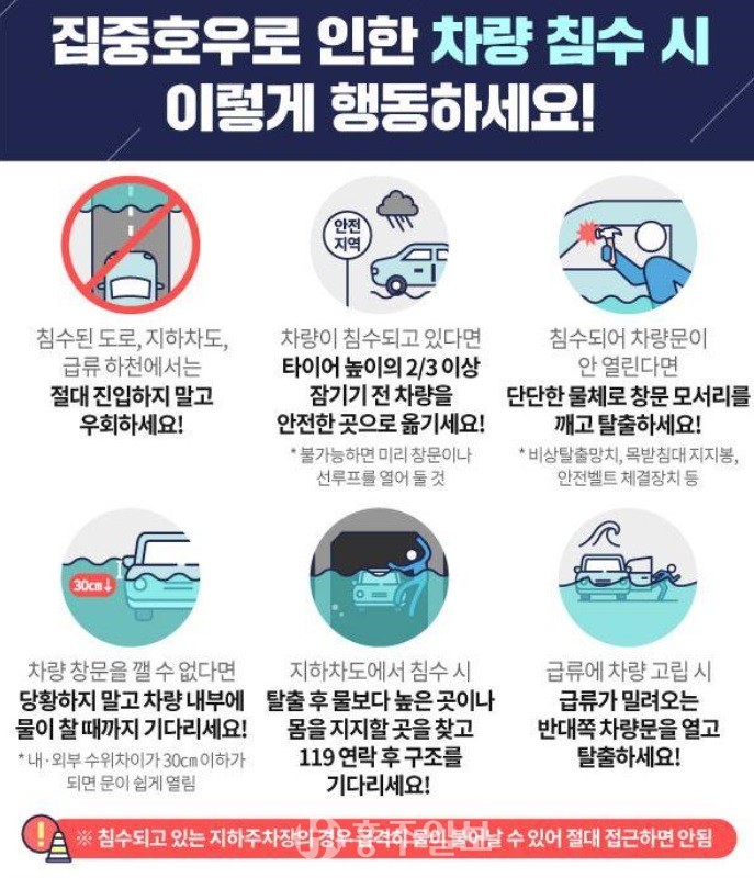 소방서 관계자는 “침수피해 발생 시 침착함을 유지하는 것이 가장 중요하며, 집중호우로 인한 안전사고가 발생하면 즉시 119로 신고해 달라”고 전했다.