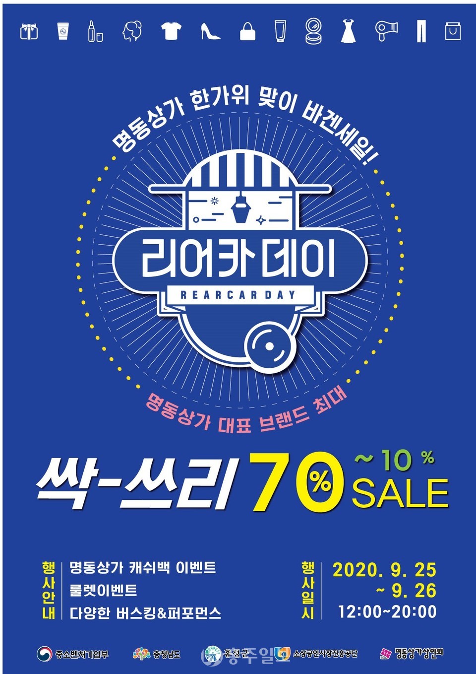 홍성읍 명동상가는 오는 23일부터 나흘간 민족 대명절인 한가위를 맞아 코로나19로 침체돼 가고 있는 상점가에 활기를 불어 넣고 코로나19 조기 극복을 위해 한가위 맞이 이벤트를 개최한다.