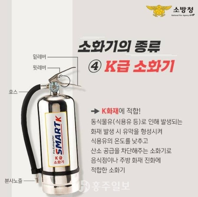 한성희 화재대책과장은 “혹시 모를 주방화재에 대비해 신속하고 효과적으로 진화할 수 있는 K급 소화기 비치를 통해 화재예방에 만전을 기해주길 바란다”라고 전했다.