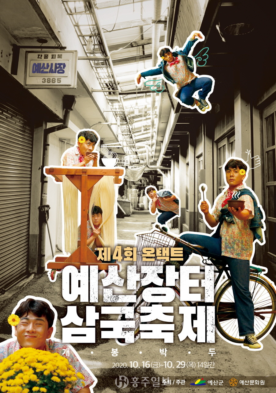 제4회 예산장터 삼국축제는 그동안 진행돼 온 축제의 명맥을 잇고 코로나19 확산방지를 위해 온라인과 비대면 방식을 결합한 ‘온택트 방식’으로 10월 16~29일에 14일간의 일정으로 진행될 예정이다.