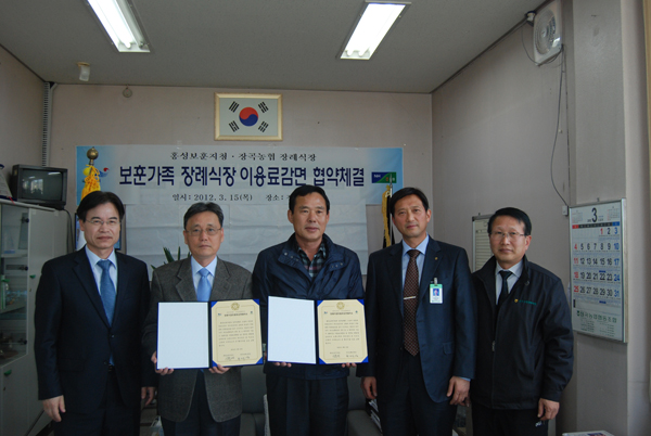 홍성보훈지청(지청장 이종경)과 장곡농협장례식장(조합장 최신식)은 지난 15일 장곡농협에서 보훈가족 장례비용 감면 협약을 체결하고 협약서를 상호 교환했다. 협약내용을 보면 감면대상은 국가유공자 및 그 배우자로서 장례식장 이용 시 분향실, 접객실 50%를 감면받게 된다. 홍성보훈지청은 국가보훈대상자 상당수가 고령이며 이에 따른 사망자가 갈수록 증가함에 따라 지역의 전문장례식장 등에 장례비용 감면(확대)사업을 전개해 국가유공자의 등록에서 사후까지의 예우지원에 노력하고 있다.
