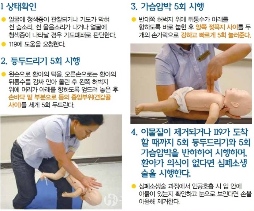 소방서 관계자는 “기도폐쇄 환자에게는 빠른 응급처치가 생명을 살리는 데 가장 중요한 역할을 한다”며 “소중한 생명을 살릴 수 있는 응급처치법을 숙지하고 위급상황 시 언제든지 119로 신고해달라”고 당부했다.