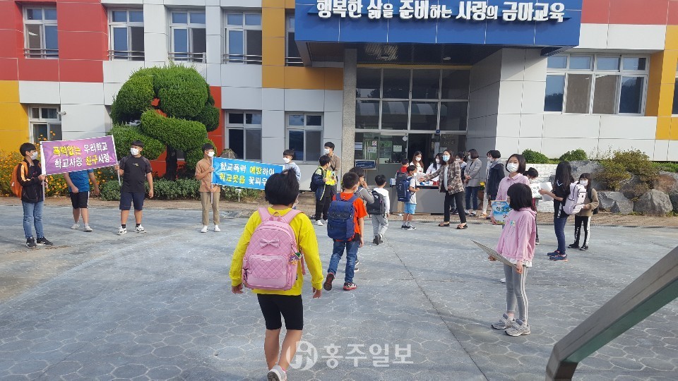 금마초등학교(교장 신해순)는 지난 29일에 학교 운동장에서 학생회 주관 학교폭력예방 캠페인을 개최했다.