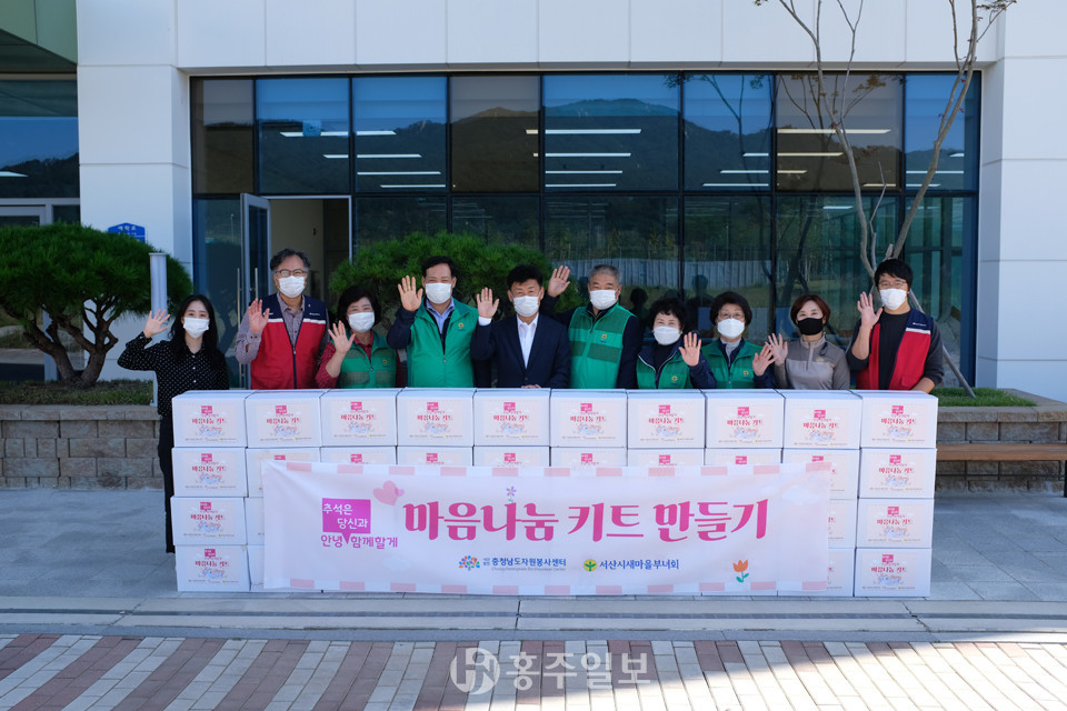 정부와 지자체들이 추석명절 연휴 간 고향 방문을 최대한 자제해 달라고 당부하고 있는 가운데 지난달 24일, 충청남도자원봉사센터(센터장 박성순)와 시군자원봉사센터, 충청남도새마을회(회장 임동규), 충청남도새마을부녀회(회장 임순복) 회원들은 ‘안녕 마음나눔 키트’ 1000개를 직접 제작해 도내 홀몸 어르신들에게 전달했다.