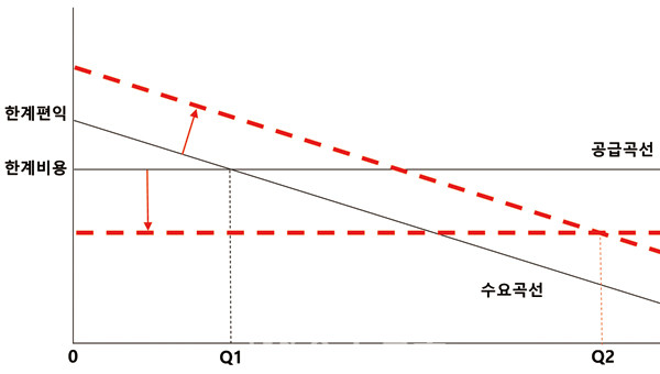 출산율이 상승하기 위해서는 자녀로부터 얻는 편익이 상승해 수요곡선은 위로 올라가고, 한계비용은 감소해 공급곡선이 내려가야 할 것이다.