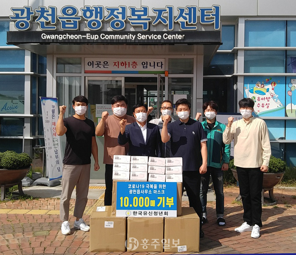 지난 5일 한국유신청년회(회장 박동견)가 광천지역 주민을 위해 1만 장의 일회용 마스크를 기부했다. 박동견 회장은 “코로나19로 고통을 겪고 있는 광천지역 주민들에게 조금이나마 도움이 되고 싶었다”고 전했다.