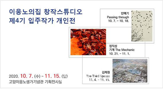이번 개인전은 입주작가 3인의 릴레이 전시로 진행되며 △10월 7일부터 18일까지는 민택기 작가의 개인전 〈Passing through〉展 △10월 21일부터 11월 1일까지는 정직성 작가의 개인전 〈기계 The Mechanic〉展 △11월 4일부터 15일까지는 김제원 작가의 개인전 〈The Third Spaces〉展이 열린다.