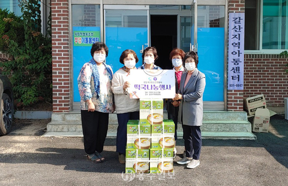 생활개선홍성군연합회(회장 박미자)는 지난 12일 떡국 10박스를 갈산지역아동센터에 전달하며 지역아동들에게 사랑 나눔을 실천했다.<사진>