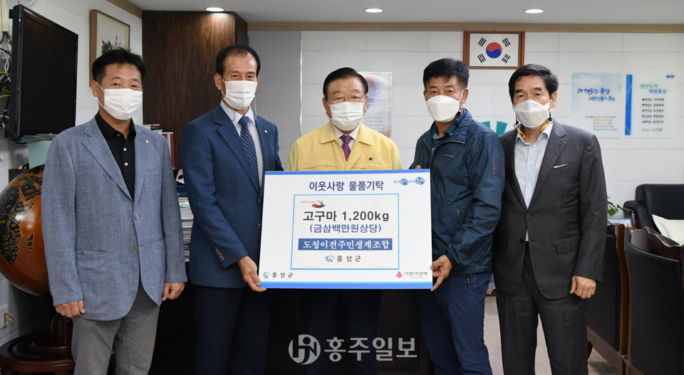 홍성 도청이전주민생계조합(조합장 장영석)이 직접 재배한 고구마 1200kg(300만 원 상당)을 어려운 이웃을 위해 기부하며 따뜻한 정을 나눴다.