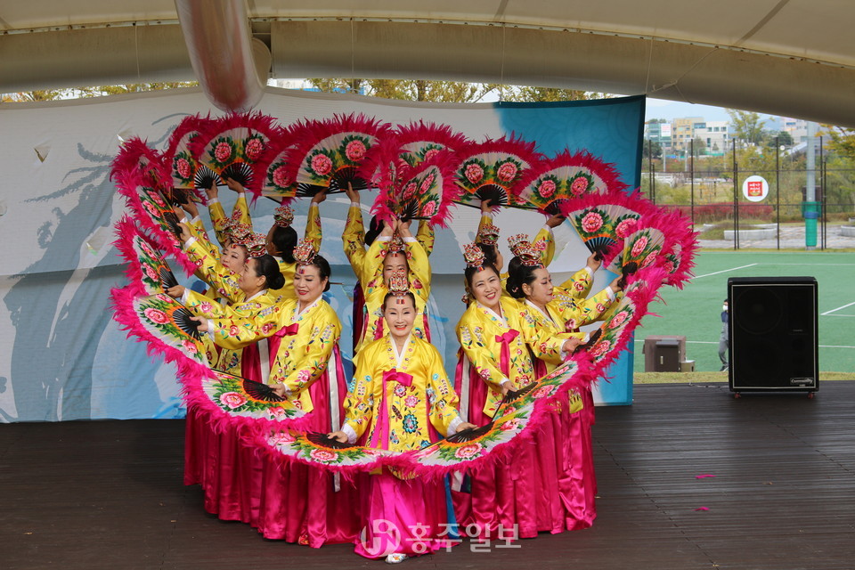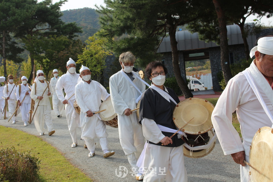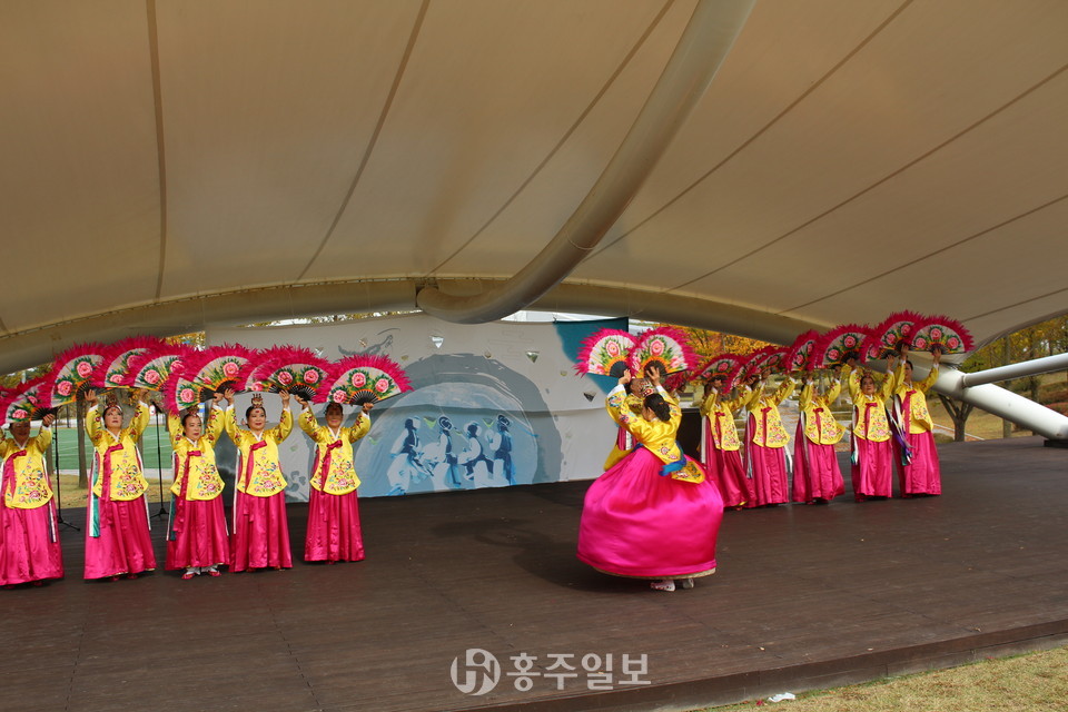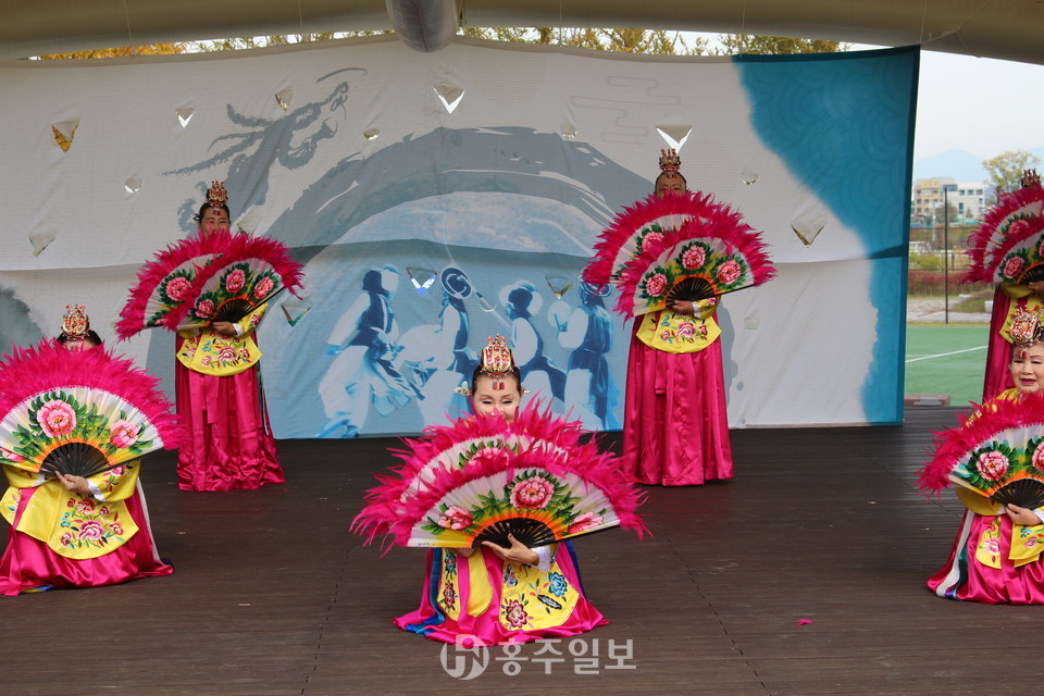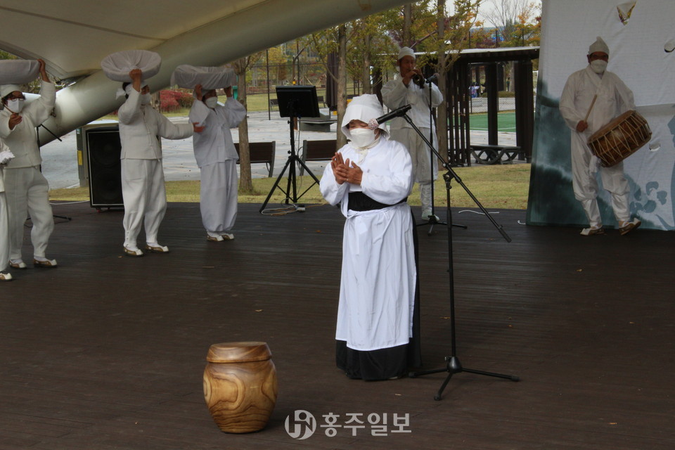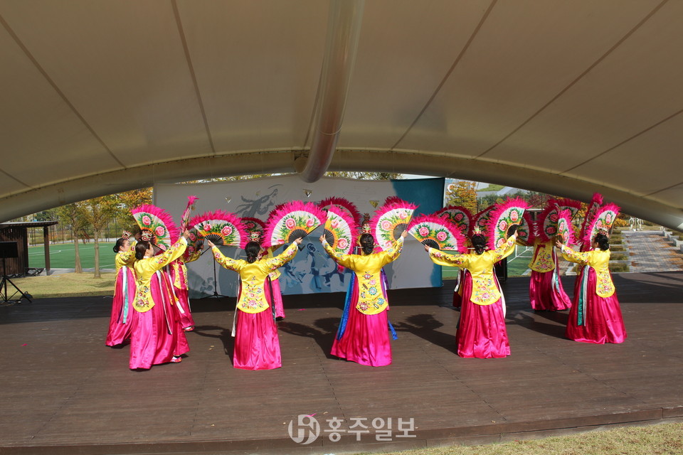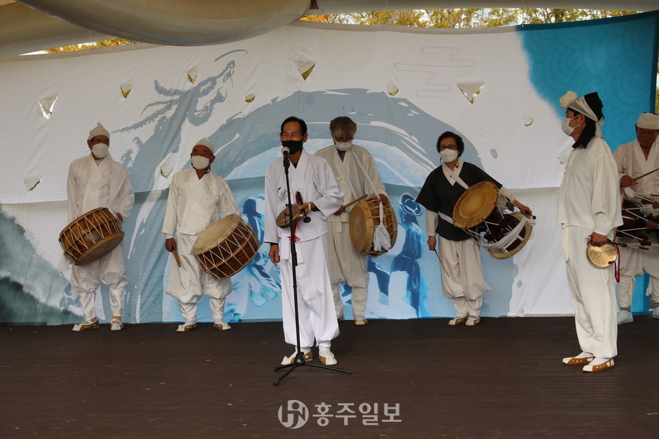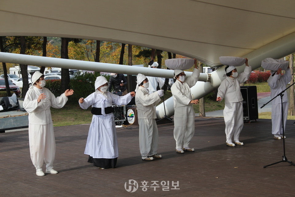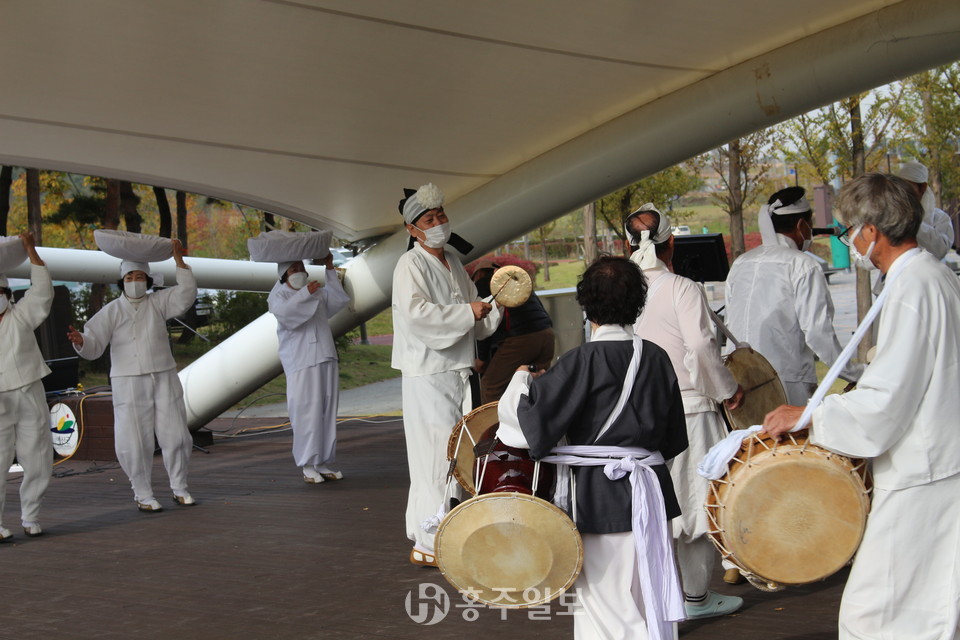 지난 15일 내포신도시 소재 홍예공원 야외공연장에서 ‘예산풍물소리’의 민속농악상설공연이 진행됐다.
