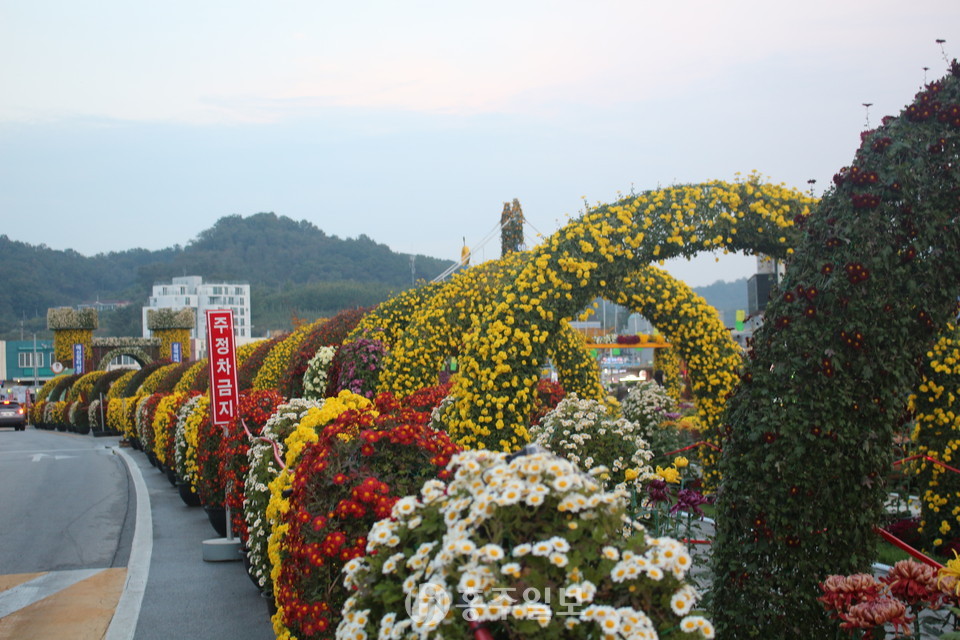 특히 점등식 이후에는 국화 조형물에 설치한 조명들이 발광하게 되면서 행사 현장이 밝아지며 훈황의 어두움을 몰아냈다.
