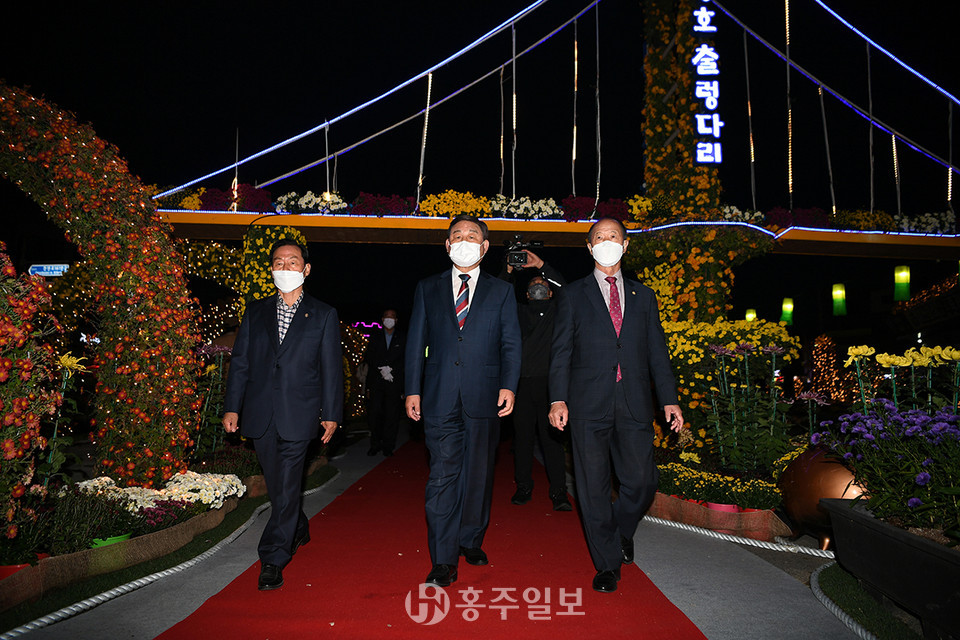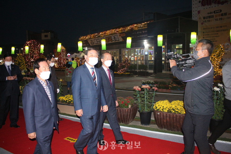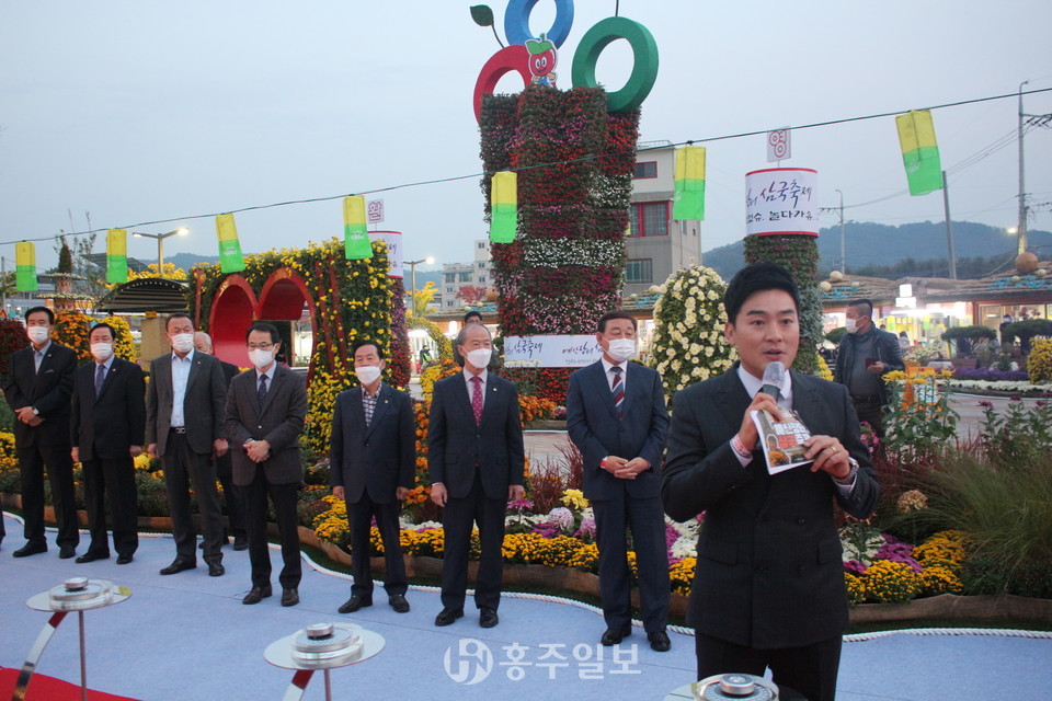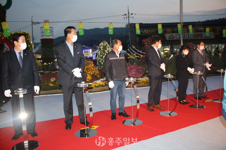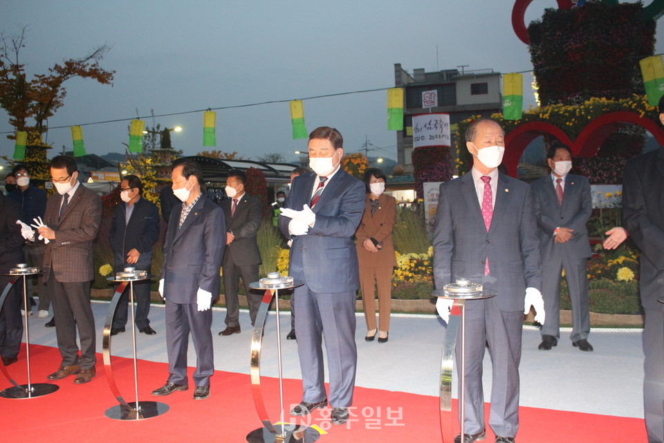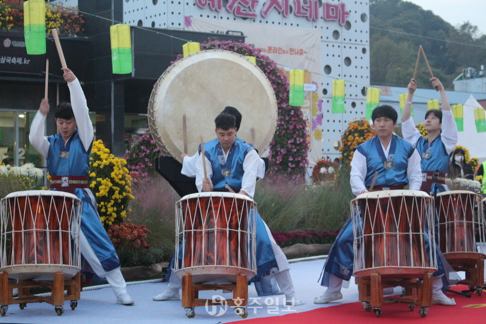 이날 개막식은 식전공연으로 시작해 황선봉 군수와 예산군 관계자들이 참석한 점등식, 국화전시장과 열린장터 관람, 삼국 전시관 제막 등의 순서로 진행됐으며, 비대면과 온라인을 결합한 ‘온택트’방식으로 진행해 인터넷에 영상을 통해서 축제를 중계했다.