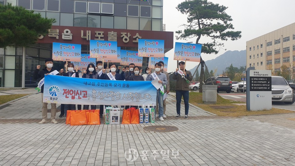 홍북읍 직원들은 지난 21일 4개의 홍보팀을 편성해 아파트와 오피스텔 등 미전입 세대를 찾아 전입안내문 배부와 홍성군 혜택을 담은 책자를 전달하고 전입신고를 독려했다.