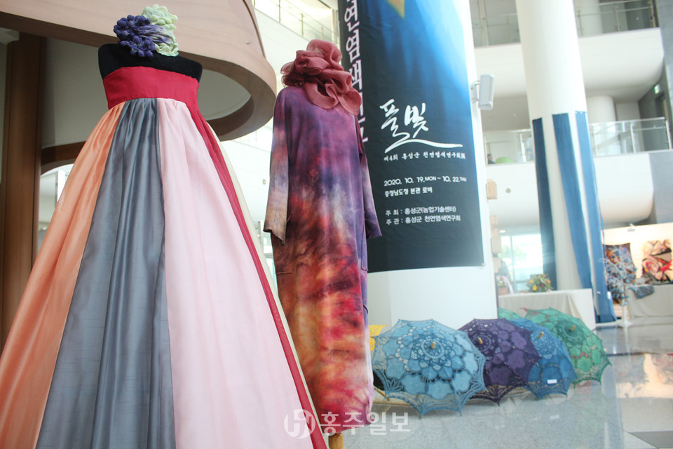 지난 19일 충남도청 본관 1층 로비에서 홍성군천연염색연구회(회장 김지란)가 주관하고 홍성군농업기술센터에서 주최한 제4회 ‘풀빛’ 자연염색전이 열렸다.<사진>