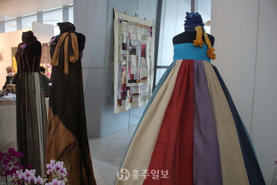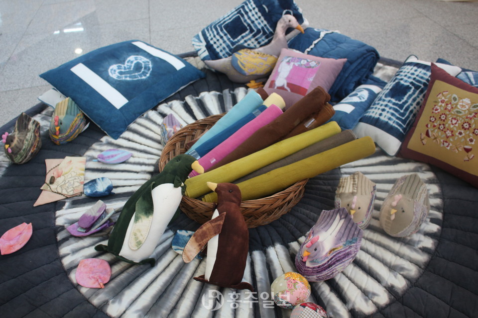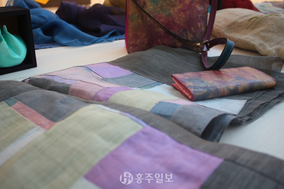 전시회는 22일 오후 5시까지 열리며 홍성군천연염색연구회 회원들이 직접 제작한 200여점의 작품들이 전시됐으며, 모두 실제 쑥·메리골드·강황 등의 천연재료를 통해 염색한 천과 가죽 공예 작품으로 구성돼 있다.