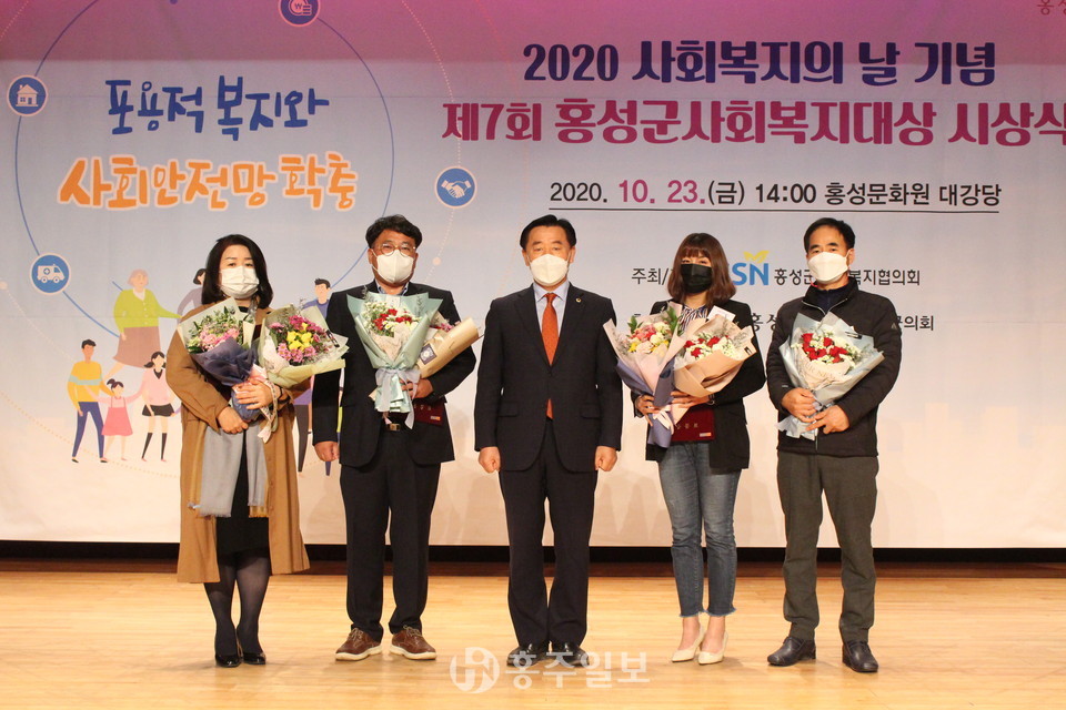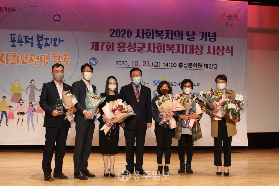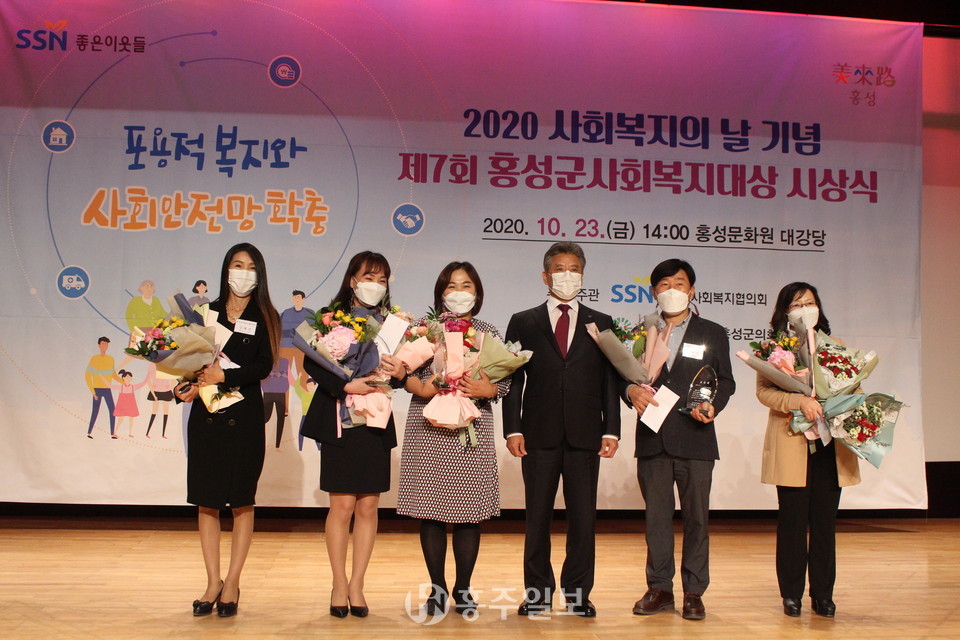 홍성군사회복지협의회(회장 이은규)는 사회복지의 날을 맞아 지난 23일 ‘제7회 홍성군사회복지대상 시상식’을 열고 지역사회복지 증진을 위해 노력한 유공자들에게 표창을 수여했다.