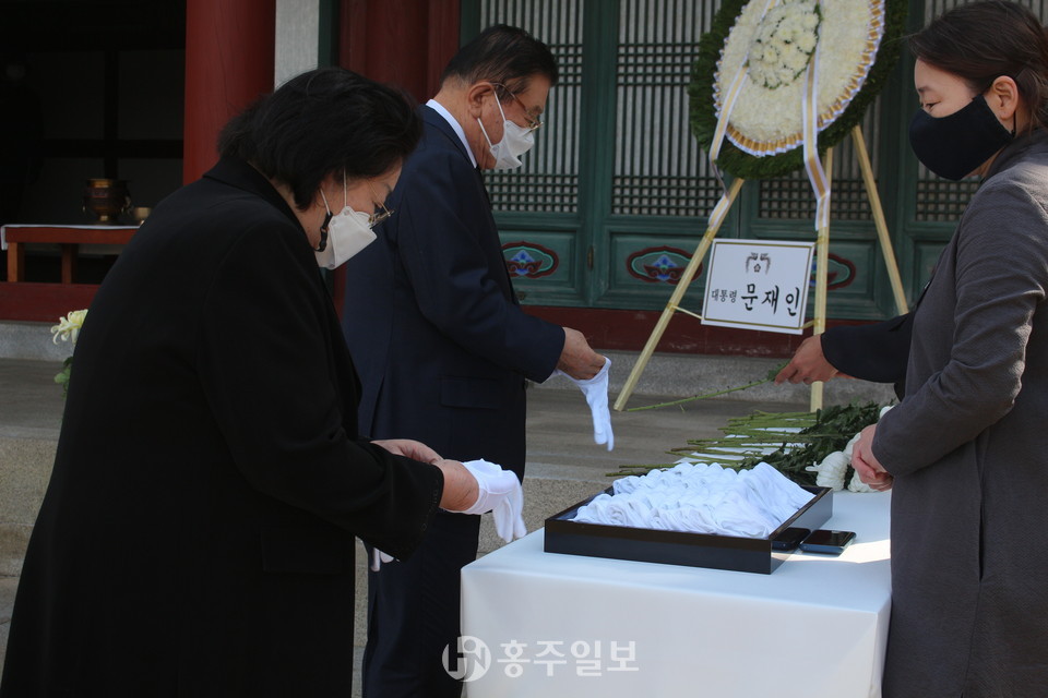 참석자들의 헌화와 분향이 이어지고 ‘독립군가’를 다같이 제창한 뒤 폐회식을 가졌다. 추모제에 참석한 홍주향토문화연구회 이의석 회장은 “김좌진 장군은 일제의 침략으로부터 목숨을 바쳐 나라를 지켜냈다. 우리나라는 그의 노력을 기억해서라도 하루빨리 전범국인 일본의 잔재를 청산하고 강직한 나라가 돼야할 것이다”고 전했다.