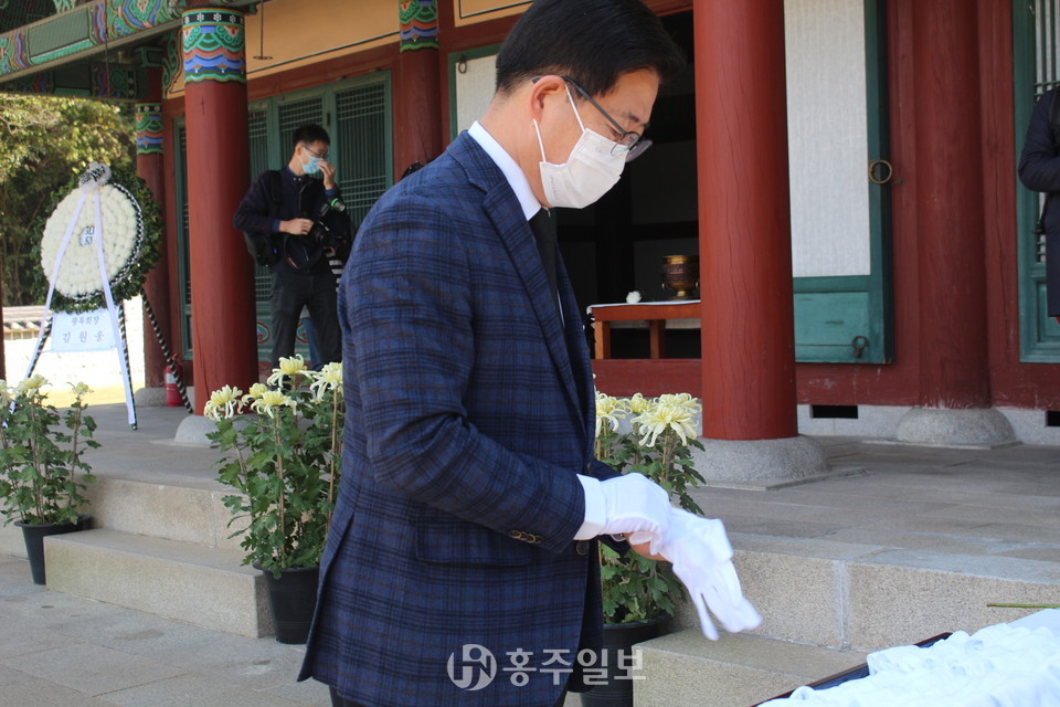 이날 추모제는 올해 청산리전투 전승 100주년을 맞이했음에도 기존 성대하게 계획했던 김좌진 장군 관련 행사들을 코로나19로 인해 부득이하게 모두 취소하고, 김좌진 장군의 손녀인 김을동 백야 김좌진 장군기념사업회 이사장과 김석환 군수, 양승조 충남도지사, 홍성군의회 장재석 부의장과 군의원들, 홍문표 국회의원, 홍성교육지원청 김성수 교육장 등 최소 인원들만 참여한 채 간소화해 진행됐다.