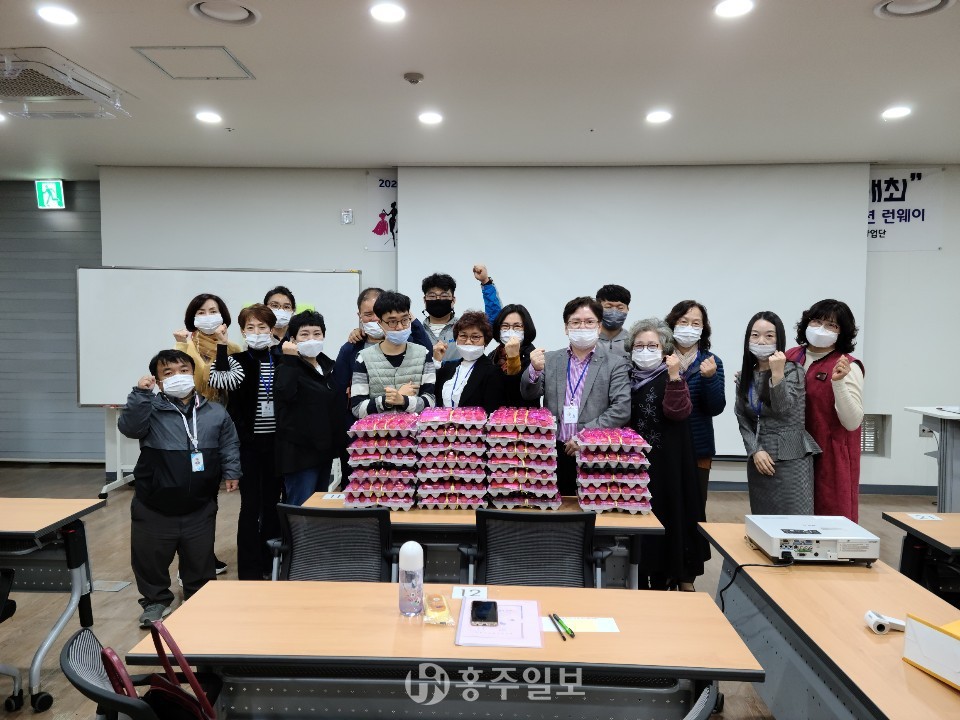내포사회복지연구원(원장 정윤)은 여름철 어르신들 삼계탕 나눔 행사에 이어 매달 이웃들에게 음식 나눔 행사를 실천하고 있다. 내포사회복지연구원은 지난 24일 충남보훈관에서 홍성군문화특화사업단 공모에 채택된 ‘인생 2막 신중년 런웨이’ 2주차 강의에 앞서, 한누리 중증 장애인 시설에 계란 20판, 광천 사랑샘 아동복지시설에 계란 20판, 위기가정 1가구에 계란 5판을 전달했다.