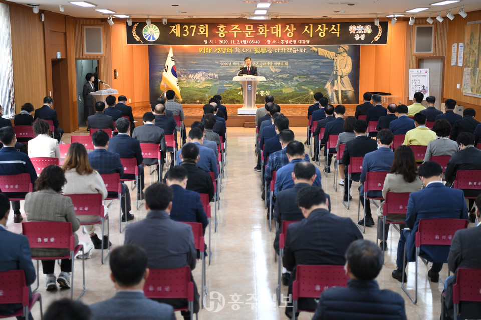 군은 2일 본청 대강당에서 직원모임을 개최하고 홍주문화대상의 수상자와 나눔실천 유공군민에 대한 표창을 전수했다.