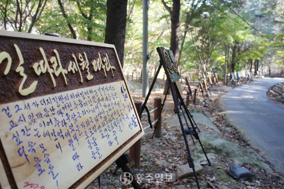 지난 29일 (사)한국문인협회 홍성지회의 주최·주관으로 용봉사 인근의 용봉산 등산로에서 제2회 용봉산등산로 숲속시화전이 개최됐다. 이날 시화전 개최 축하공연으로 색소폰 연주가 진행됐으며, 조승만 도의원, 홍주고등학교 이상헌 교장 등이 작품을 출품했다. 시화전은 지난 2일까지 이어졌다.