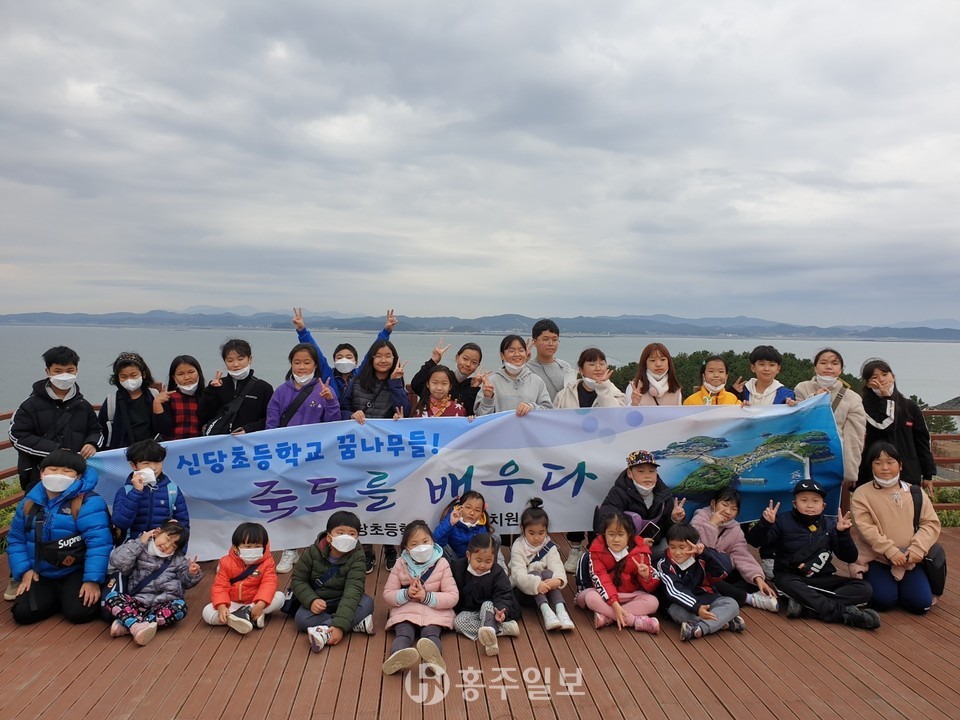 죽도는 신당초등학교가 위치한 서부면 남당리의 남당항에서 홍주여객선을 타고 10여분이면 갈 수 있는 섬으로 신당초 소속인 죽도 분교장이 있었던 곳이고 마을주민들이 생업에 종사하고 있는 곳이다.