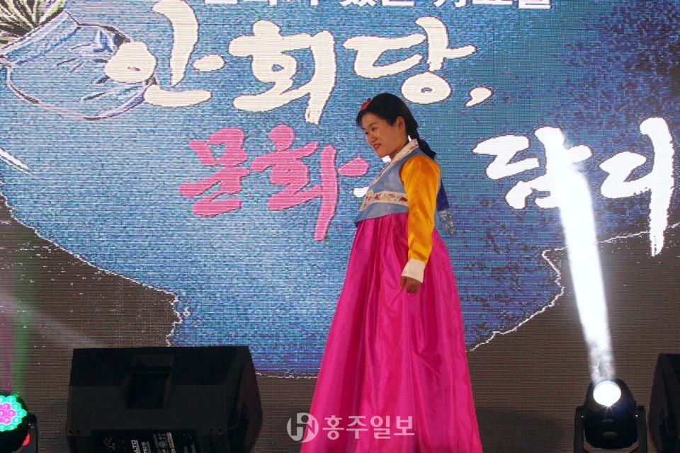 지난 9일 (사)해피맘홍성군지회(지회장 홍시화) 주최·주관 행사인 ‘안회당, 문화를 담다’의 세 번째 일정인 지역문화 공연을 통해 내포사회복지연구원(원장 정윤)의 한복 패션쇼가 열렸다.