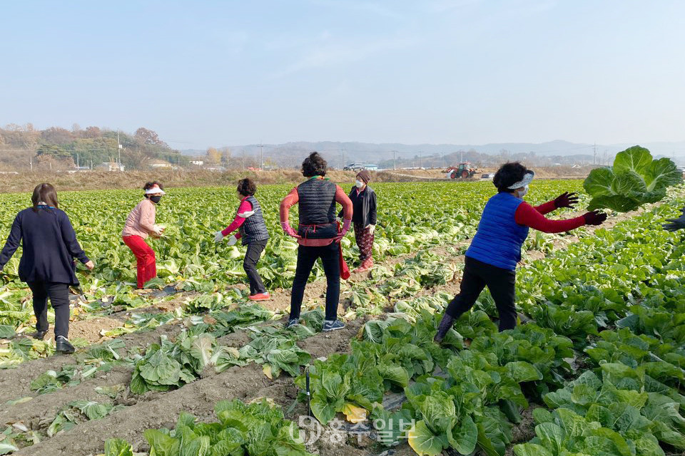 부족한 일손 보태며 배추 수확 도와