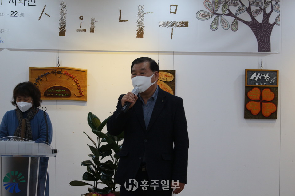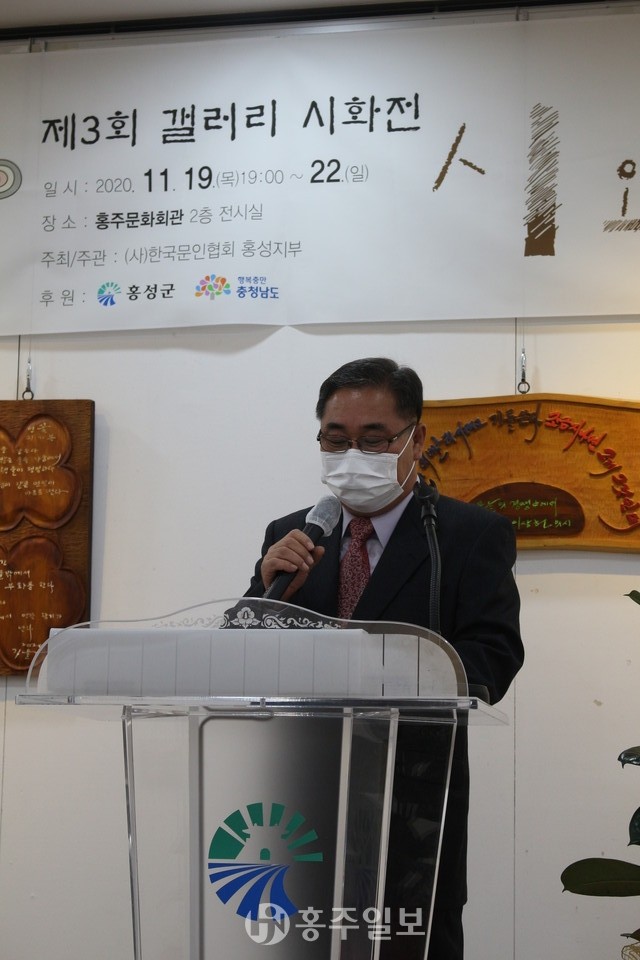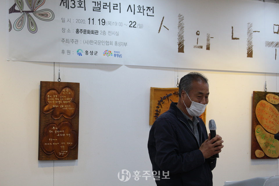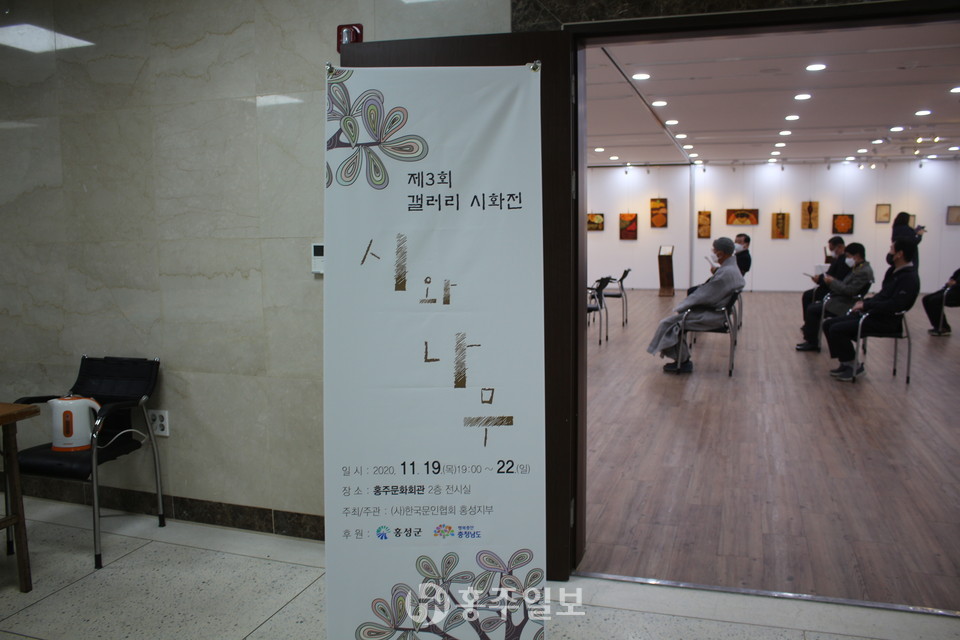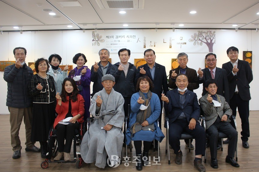 지난 19일 홍주문화회관 2층 전시실에서 (사)한국문인협회 홍성지부(지부장 황정옥)의 제3회 시화전 ‘시와 나무’의 개회식을 진행했다.