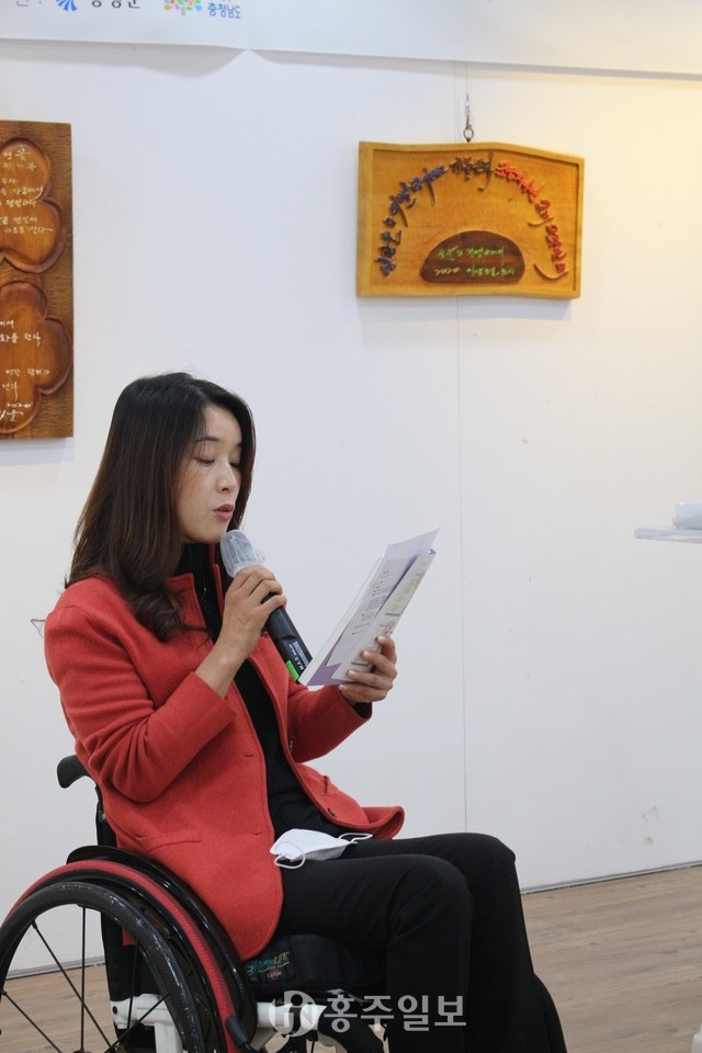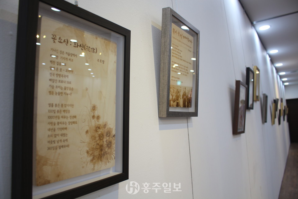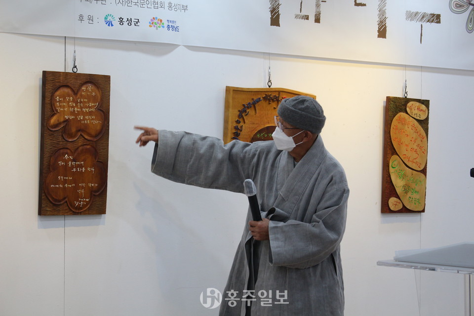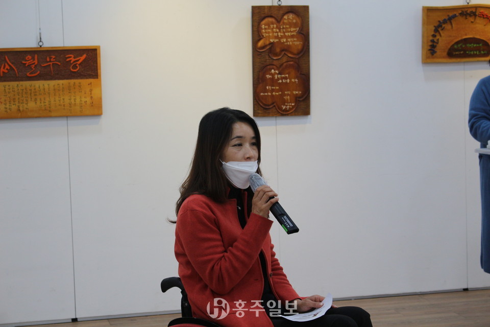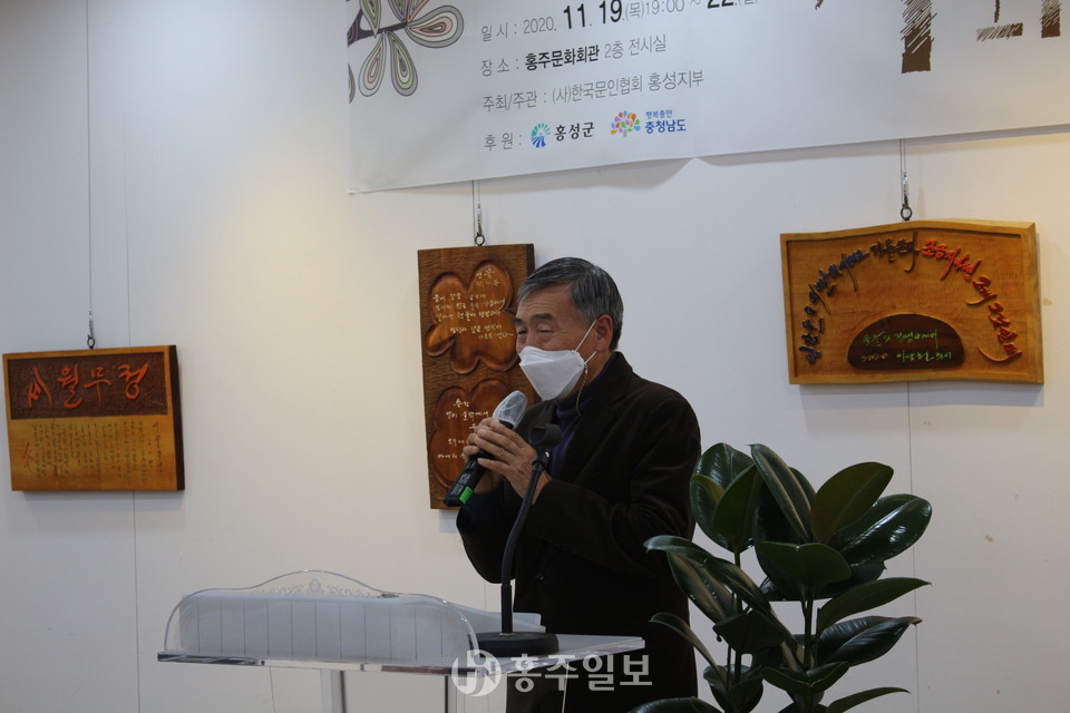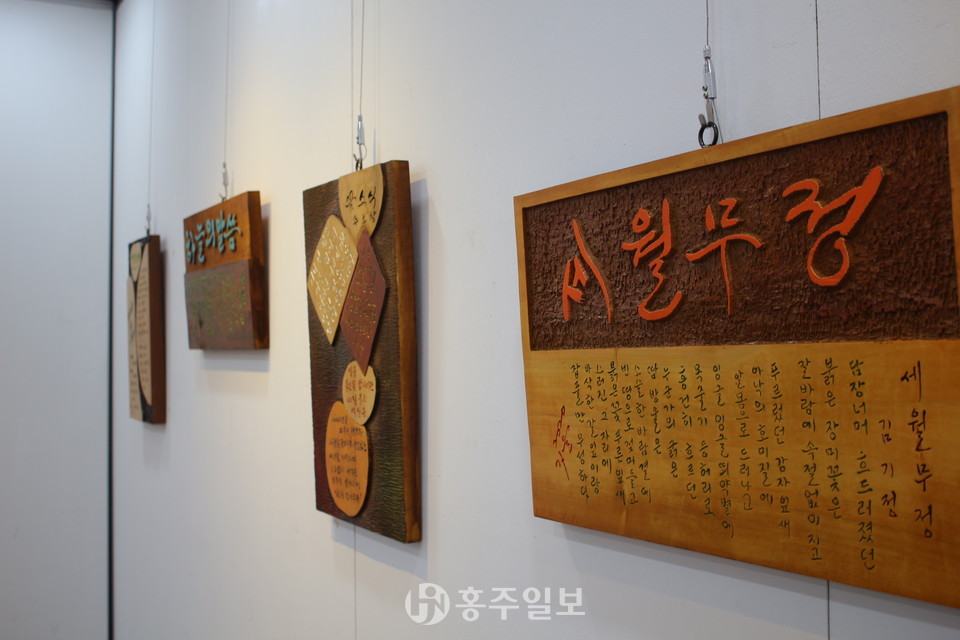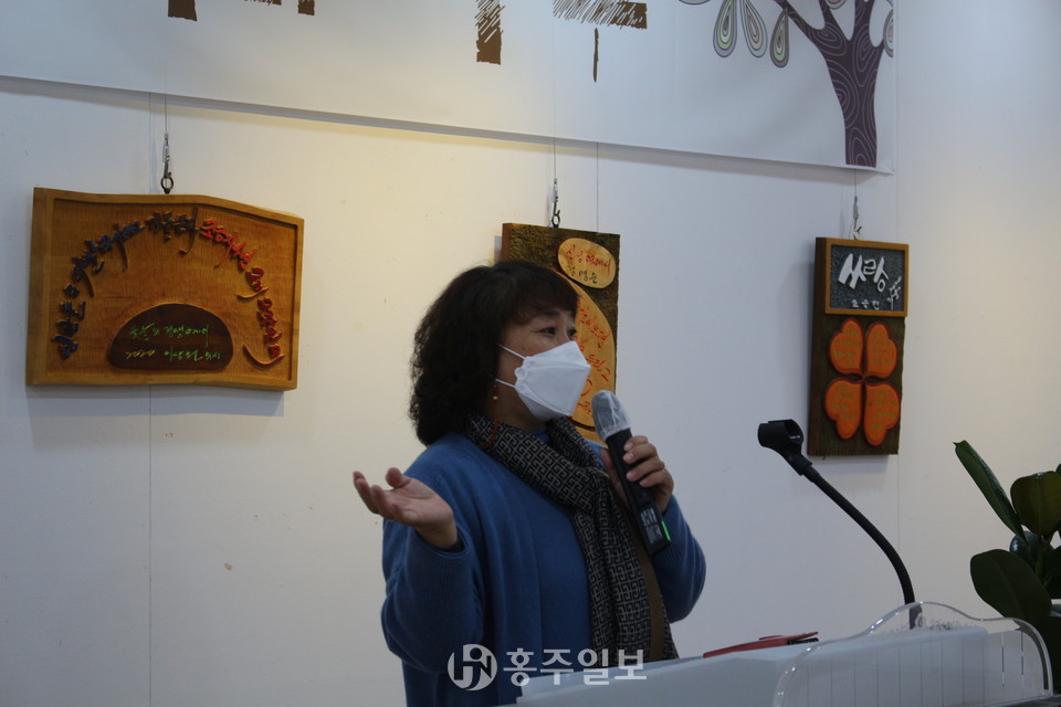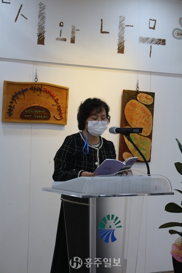 한국문인협회 홍성지부 황정옥 지부장은 개회사를 통해 “오늘 서각작품으로 만들어진 문인협회 회원분들의 작품들을 전시하게 됐다”며 “작업하는 내내 모든 열정을 쏟아 다양한 재해석을 해주신 보광서각회 회원분들에게 감사드린다”고 전했다.