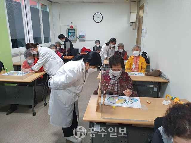 청운대학교 식품영양학과에서는 본관에서 진행되는 인지서비스와 관련해 치매 노인들에게 꼭 필요한 영양교육을 진행했으며, 본 회차는 코로나19로 인해 발생할 수 있는 영양 불균형 개선을 위한 영양정보 카드뉴스와 영양 관리 교육을 비롯해 뇌에 좋은 간식을 제공했다.