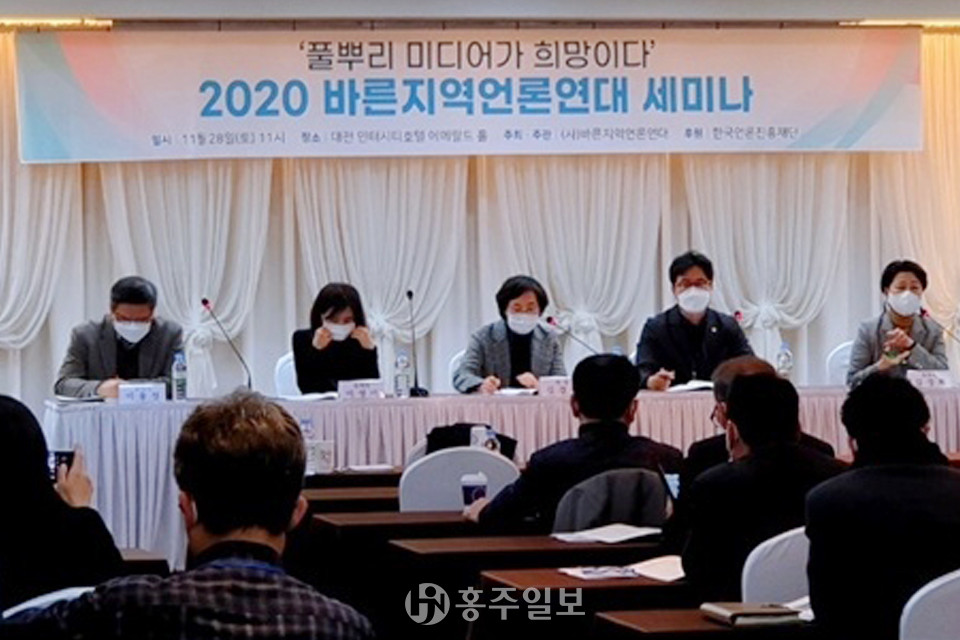 전국 풀뿌리 주간지 연대모임인 (사)바른지역언론연대(이하 바지연)는 지난달 28일 대전 인터시티호텔에서 전국 40여개 회원사들이 참여한 가운데 ‘풀뿌리 미디어가 희망이다’를 주제로 세미나를 개최했다.<사진> 이번 세미나에서는 ‘코로나 시국의 지역신문 생존전략 우수사례발표’를 시작으로 ‘지역신문 육성을 위한 지역조례 제정방안 모색을 위한 토론회’와 ‘코로나19 시대 지역신문의 새로운 패러다임을 묻다’를 주제로 한 대표자 토론 순으로 진행됐다.