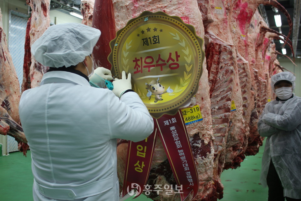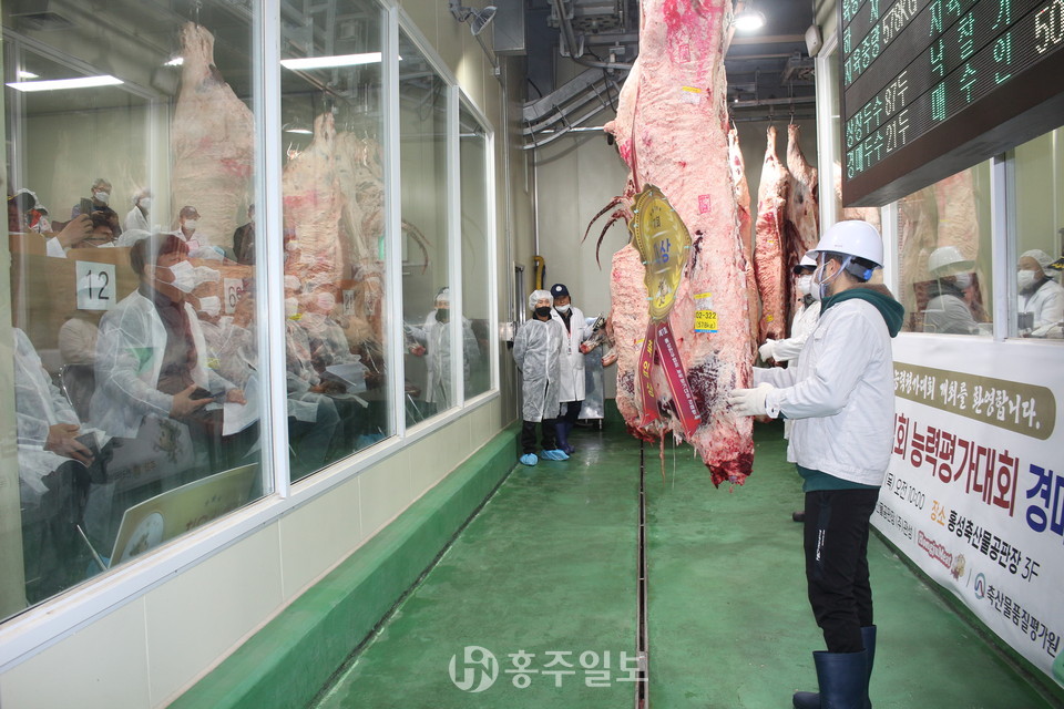 지난 3일 광천읍 홍성축산물공판장 3층에서 전국한우협회 홍성군지부(지부장 이지훈)의 주최로 ‘제1회 한우협회 한우능력 평가대회’가 개최됐다.
