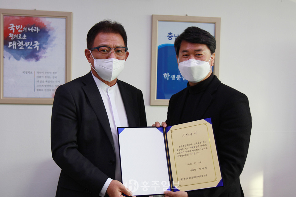 파로스정보통신(대표 장태철)은 지난달 26일 홍주초등학교(교장 김재현)를 방문해 학생들의 인성교육과 예술활동 지원을 위한 발전기금 1000만 원을 기탁했다. 장 대표는 올해 초에도 발전기금 200만 원을 기탁한 바 있다.