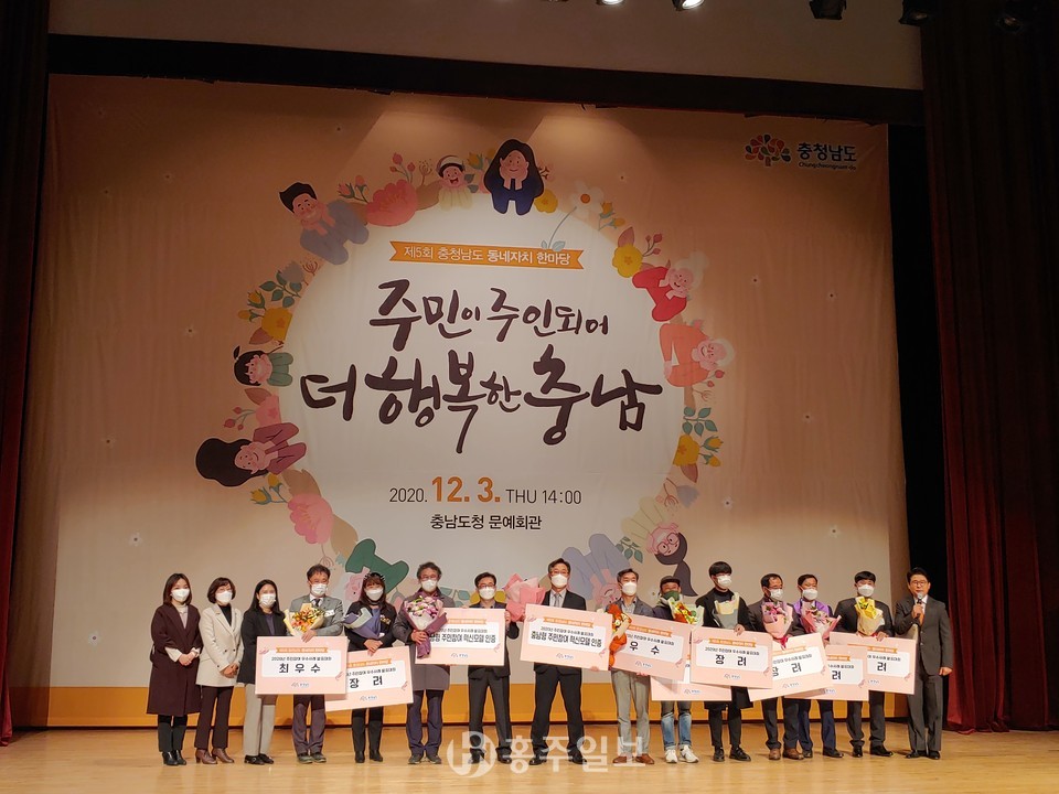 한편 지난 3일 진행된 ‘제5회 충남도 동네자치 한마당’ 대회는 저출산, 고령화, 사회양극화 3대 위기 극복, 일자리 창출 등 주민이 주도해 지역문제를 해결한 우수 모델을 발굴하고자 마련됐다.