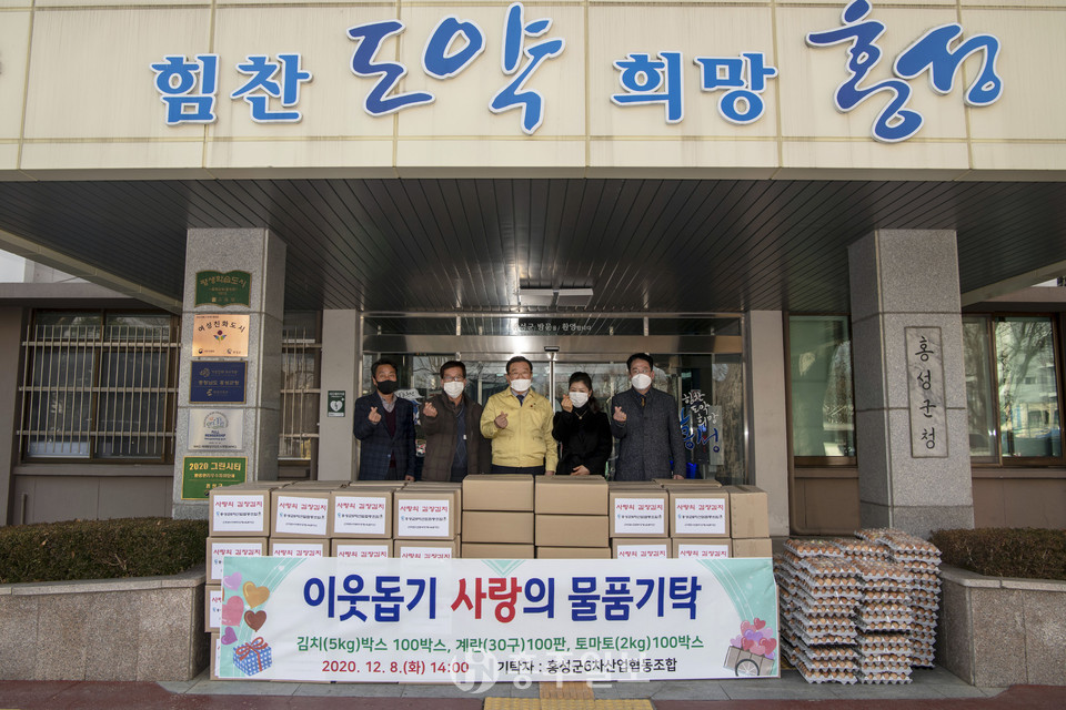 홍성군6차산업협동조합(조합장 홍병희)은 지난 8일 어려운 이웃을 위해 김치 100박스, 군계란 100판, 토마토 100박스 등 500만 원 상당의 물품을 홍성군에 기탁했다.