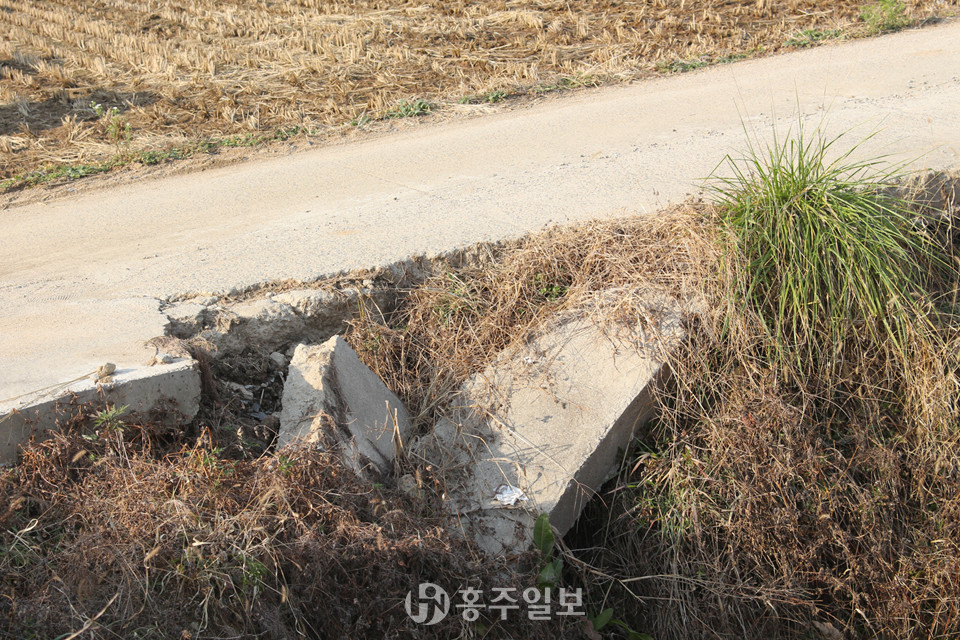 홍북읍 석택리에서 내포신도시로 통하는 신경천변 농로의 일부가 붕괴돼 통행시 안전사고가 우려된다. 해당 도로를 보행로로 자주 이용하고 있는 내포신도시 주민 A씨의 “이 도로에 균열이 생긴걸 올해 여름쯤 발견했다”라는 증언이 있어 해당 도로는 발견 시점 이전에 붕괴가 된 것으로 추정된다.