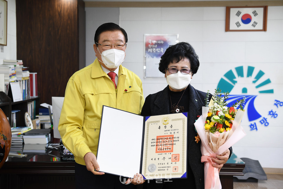 김석환 군수는 “지역 농업‧농촌 발전에 기여한 공로로 수상한 것을 축하하며, 앞으로도 지역에 헌신하고 농어업발전에 공로가 있는 농어업인들을 적극 발굴해 농어민의 사기와 농어촌의 활력을 높일 수 있도록 노력하겠다”고 밝혔다.
