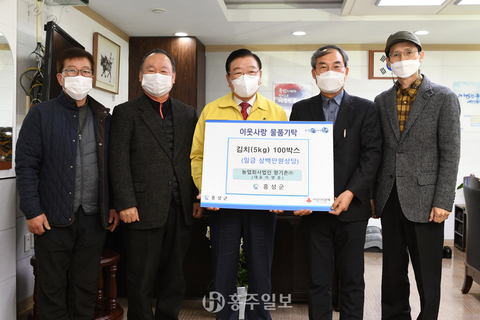 농업회사법인 향기촌(주) (대표 이영준)은 지난 15일 홍성군청에서 어려운 이웃을 위한 300만 원 상당의 김치(5kg) 100박스를 기탁했다.