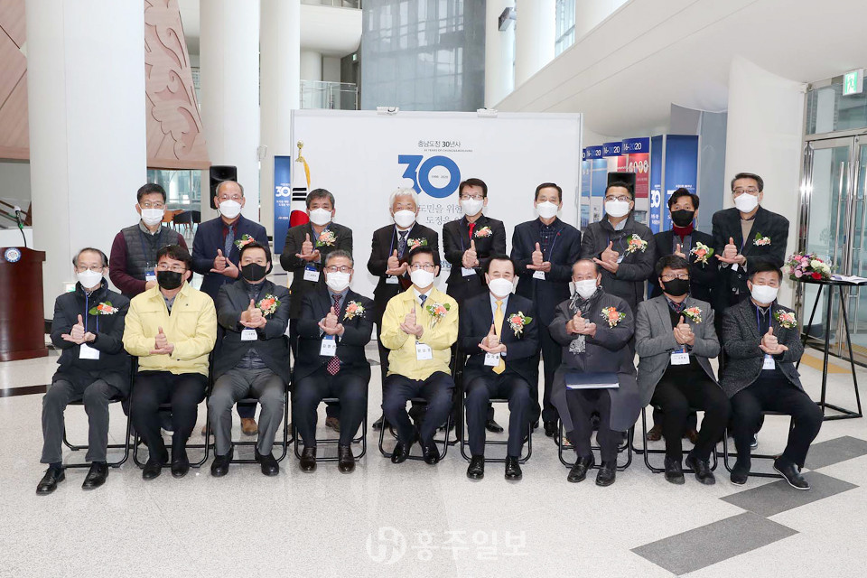 충남도는 지난 15일 도청 본관 1층 로비에서 ‘충남도정신문 창간 30주년 행사’를 개최했다.<사진> 이날 행사는 양승조 지사와 김명선 도의회 의장, 김지철 도교육감, 안장헌 도의회 기획경제위원장, 지역신문 언론인 등 30여 명이 참석한 가운데 경과보고, 감사패 수여, 축하공연과 축시낭송, 전시 관람 등의 순으로 진행됐다.