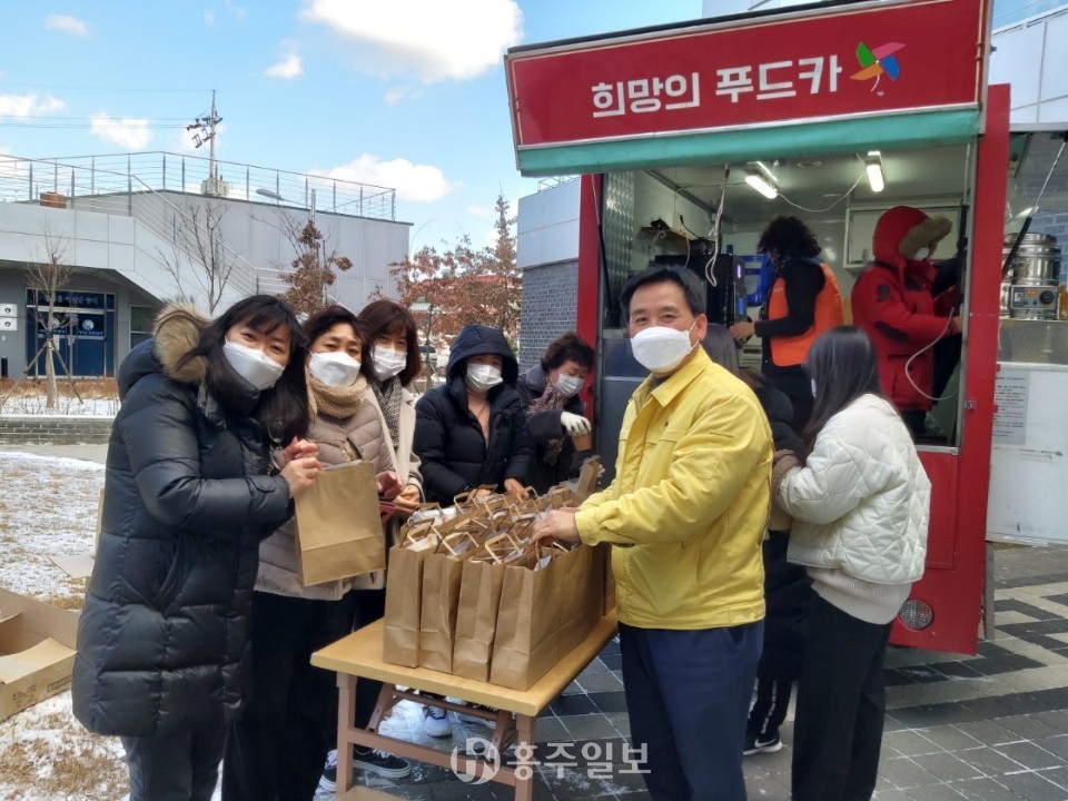 또한 충남홍성지역자활센터 희망의 푸드트럭, 자활기업 맛드림 출동 응원 간식배달과 함께 행사를 진행했다.