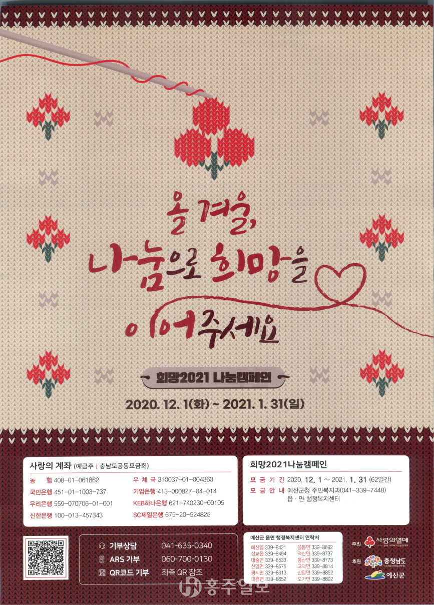 예산군은 코로나19 지역감염 예방·확산방지를 위해 ‘희망2021 나눔캠페인 이웃돕기 성금모금행사’를 취소했다.