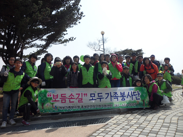 지역의 쾌적한 생활환경 조성과 자연 보호를 위해‘새봄맞이 환경정화 활동’을 실시한 가족봉사단 회원 50여명은 행사에 앞서 (사)충남장애인부모회 홍성지회 최성분 회장이 장애인부모회에 대한 설명을 했으며, (사)국제웃음치료협회 한국웃음센터 서해지부 부지부장 김지은 강사 주도로 레크리에이션을 진행했다.