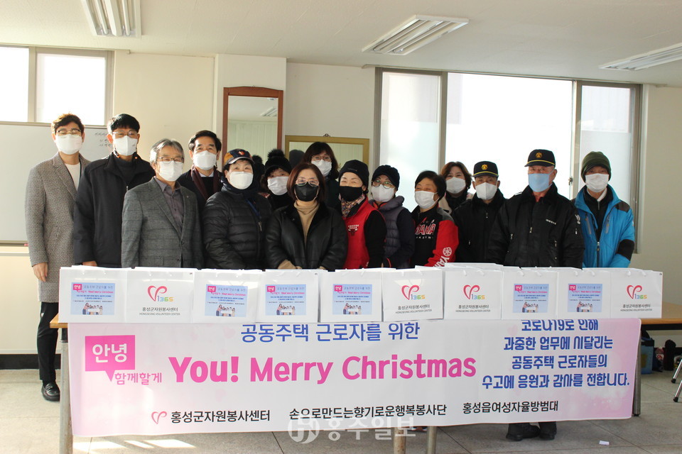홍성군자원봉사센터(센터장 이동춘)는 지난 21일부터 나흘간 공동주택 내 근로자에게 ‘안녕 함께할게 YOU! 메리크리스마스’ 응원키트 320세트를 전달했다.