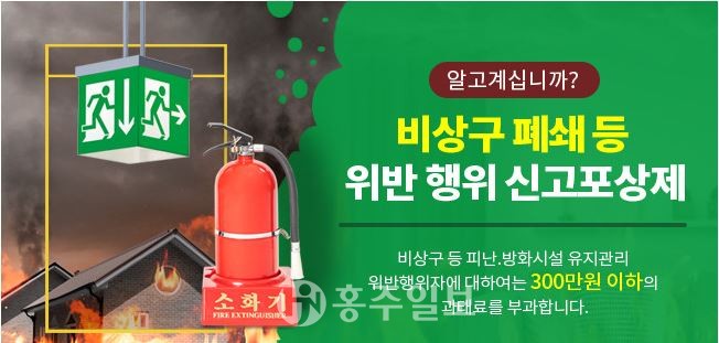 예산소방서(서장 김오식)는 군민의 안전을 위협하고 사고 발생 시 심각한 영향을 줄 수 있는 비상구 폐쇄 등의 소방시설 차단 행위에 대한 신고포상제를 2월 말까지 집중 운영한다고 밝혔다.