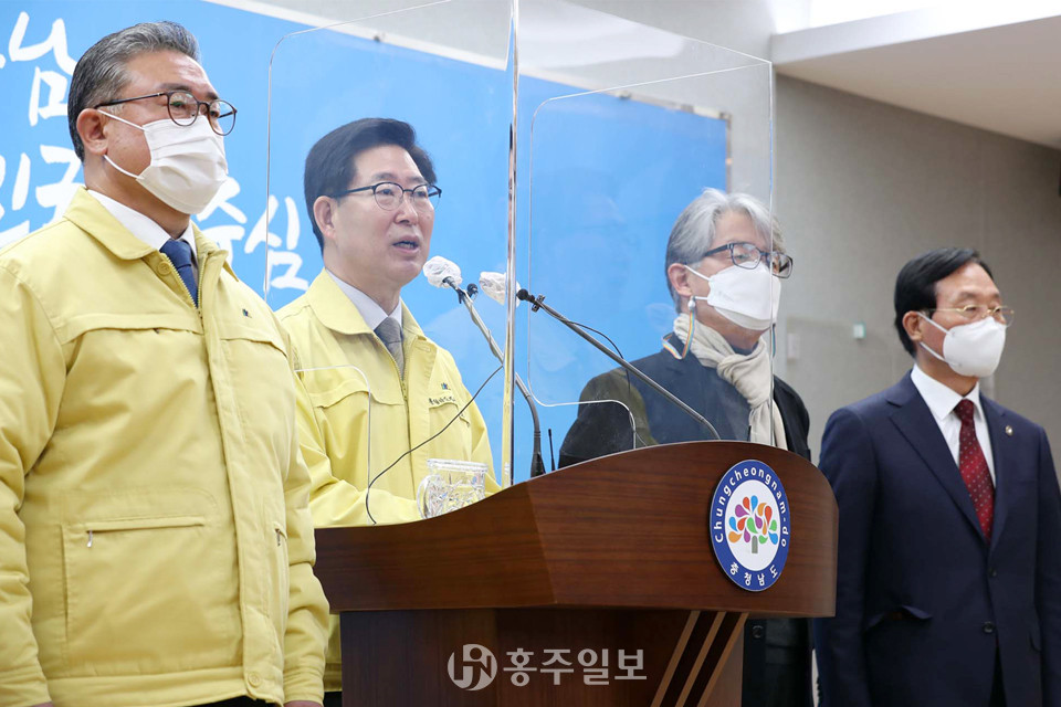 신축년 2021년, KBS가 220만 충남도민의 ‘충남방송국 설립’ 열망에 긍정적인 답변을 했다. 양승조 충남도지사는 지난 5일 도청 프레스센터에서 온·오프라인으로 새해 첫 기자회견을 열고 “KBS가 올해 1월 1일 조직 내 ‘지역신청사프로젝트팀’을 출범하고, ‘충남방송국 설립’을 우선 과제로 선정했다”고 밝혔다.<사진>