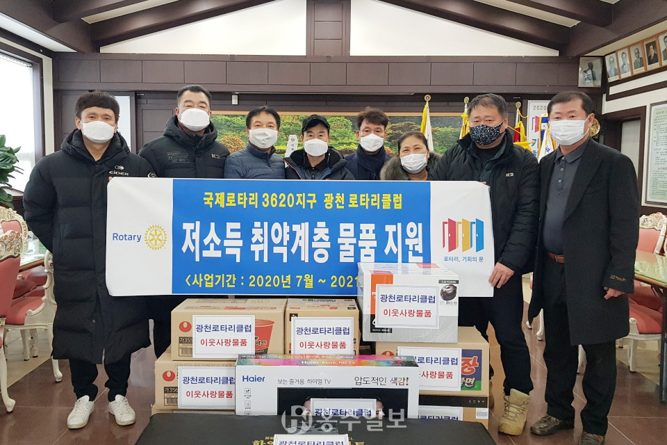 광천로타리클럽(회장 이성찬)은 지난달 30일 홍성군 희망복지지원단(단장 복성진)과 함께 관내 취약계층 10가구에 따뜻한 겨울나기를 위한 물품을 전달했다. 이날 전달된 물품은 가전제품, 책상세트, 난방유, 의복, 생필품 등 다양한 후원물품이다.