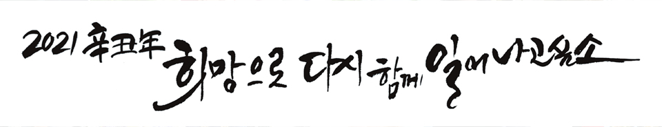 코로나 바이러스 감염증(코로나19)으로 인해 유독 힘들고 버거웠던 경자년 한 해가 지나갔다. 새롭게 시작된 신축년(辛丑年)은 육십간지 중 38번째로 신(辛)이 백색, 축(丑)이 소를 의미하는 ‘하얀 소의 해’이다. 지난 한 해 동안 몸과 마음이 지칠 대로 지쳐버린 모두가 희망찬 마음으로 정겨운 소의 해를 맞이하며 이전에는 그리 귀하지 않았던 ‘마스크 없이 환하게 활짝 웃는 이웃들의 얼굴’을 실컷 볼 수 있는 신축년이 되길 바라본다.