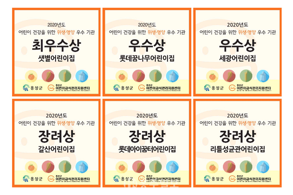 특화사업 부문 우수급식소는 갈산어린이집, 별사탕어린이집이 선정됐고, ‘컬러푸드 여행’ 우수급식소는 홍성어린이집이 선정됐다.