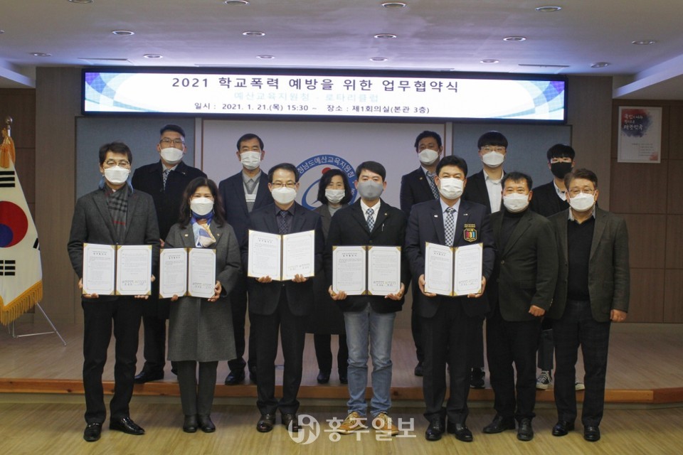 협약에 따라 예산교육지원청과 4개 로타리클럽은 학교폭력 예방 활동을 위해 상호협력하고, 청소년 선도 보호활동, 학교폭력 근절 인식 개선 활동, 체험중심 언어문화 개선활동 등을 펼칠 계획이다.